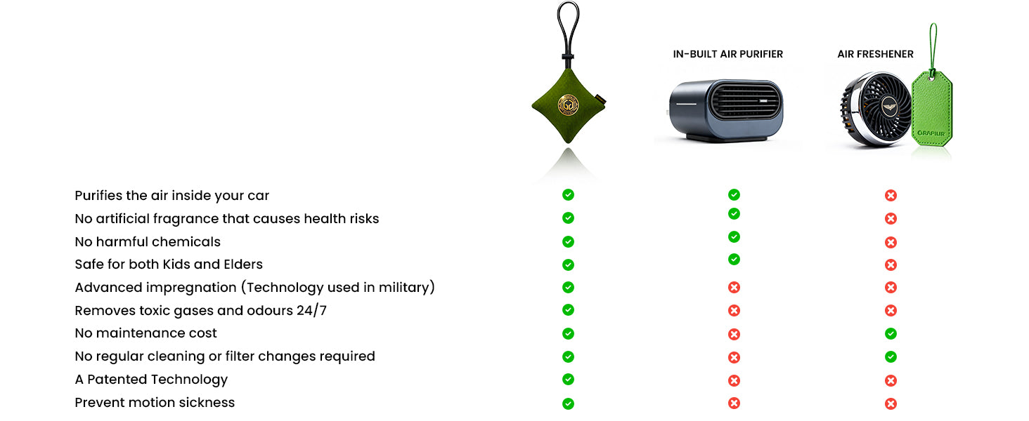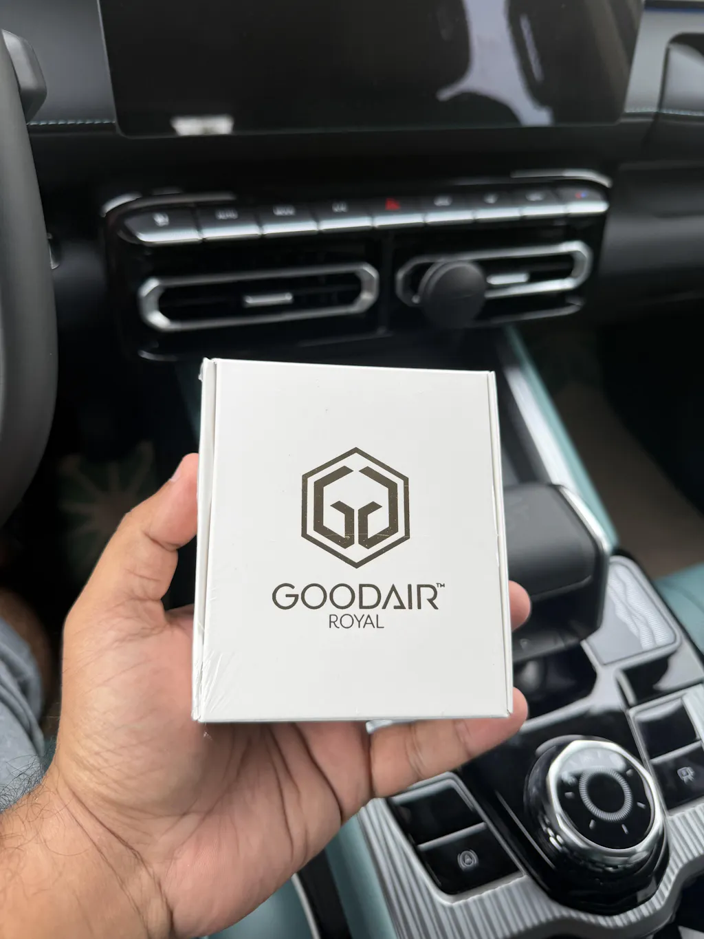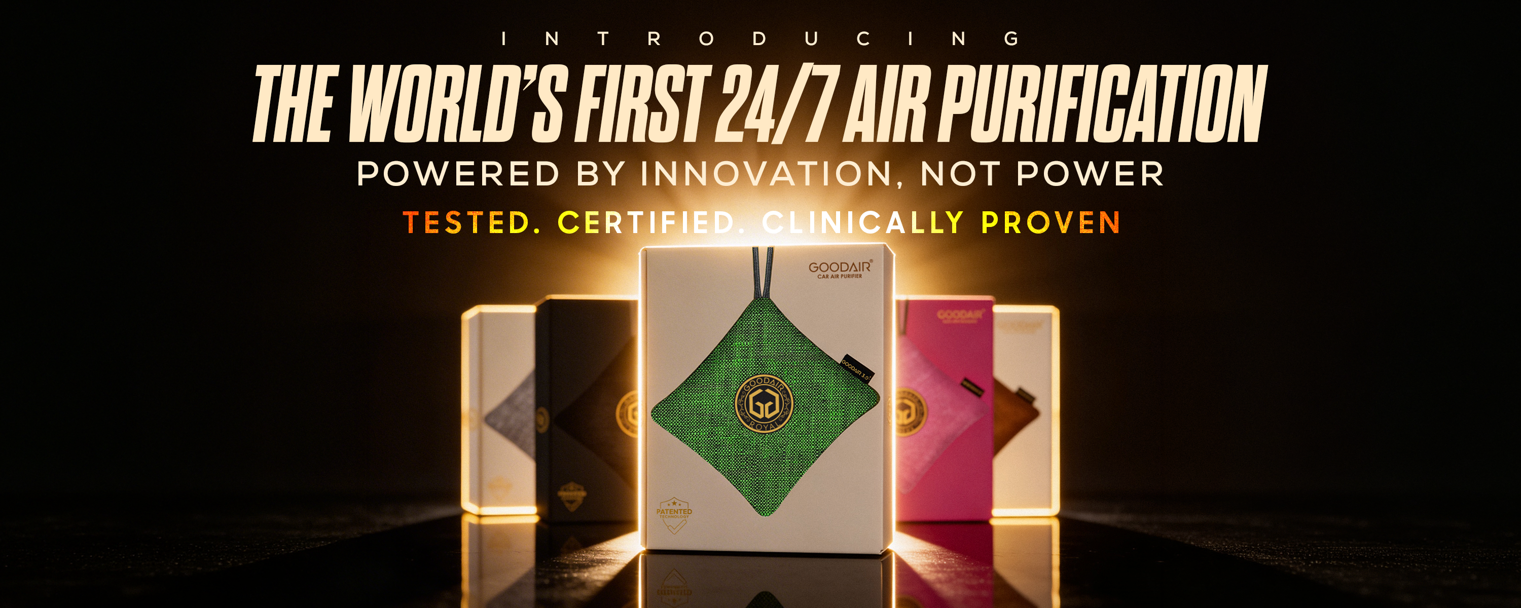 GOODAIR Royal Car Air Purifier is a revolutionary non-electric air purification system crafted with advanced impregnation technology, ensuring 24/7 protection from harmful toxic  gases. Its multilayer architecture, inspired by military defence filtration systems, effectively adsorbs toxic gases like Sulphur dioxide, Formaldehyde, Total VOCs, Ammonia, Nitrogen oxides and Carbon monoxide , ensuring a healthier car indoors. Certified to meet international standards (ISO, ASTM, and European certifications), GOODAIR is trusted by doctors and healthcare professionals worldwide for its superior performance. Its Chromium-free, high-quality activated carbon with an iodine value exceeding 1100 mg/g guarantees effective gas adsorption, eliminating odours and pollutants rather than masking them. The non-electric design makes it a sustainable and energy-efficient solution, free of batteries and wiring. Each unit, handcrafted over 45 days, is as aesthetically pleasing as it is functional. GOODAIR stands apart by addressing the root causes of indoor air pollution, ensuring a pure and safe environment for your family. GOODAIR delivers unmatched protection, creating a refreshing and secure driving experience.